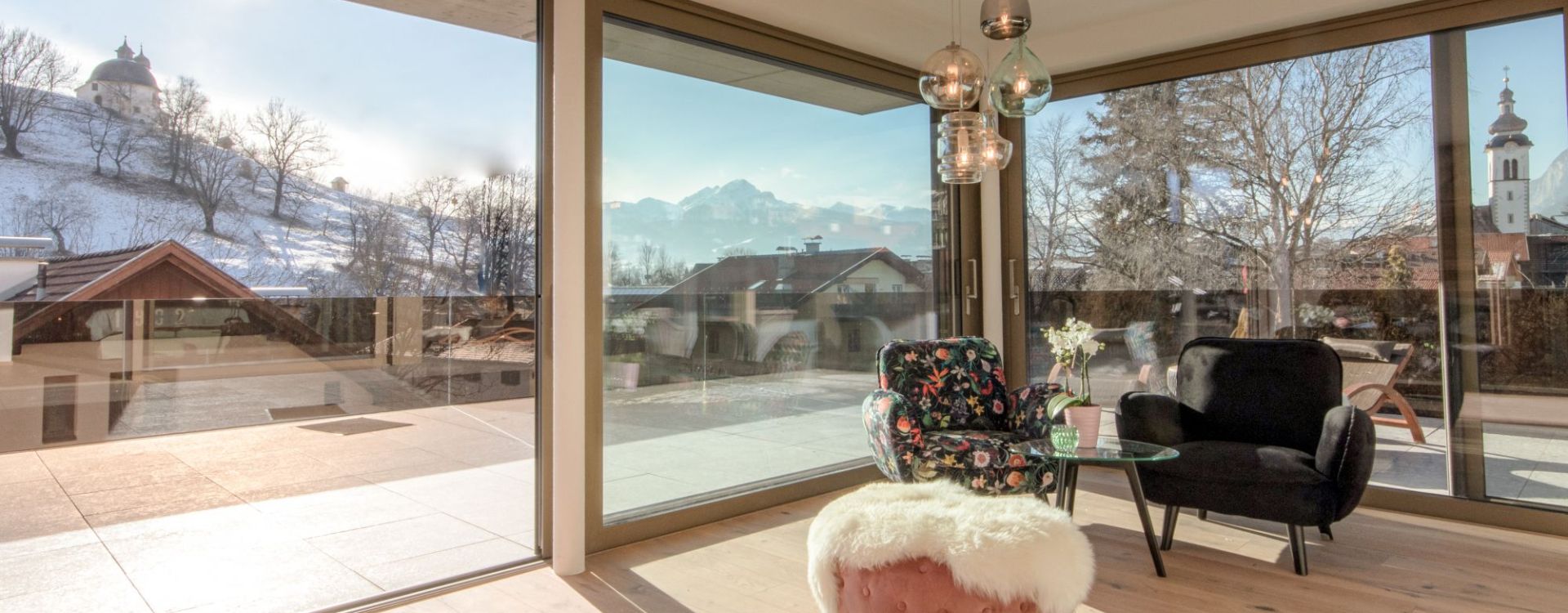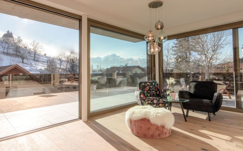 Due to the southwest orientation you can enjoy a perfect sunset. The generous sliding glass doors connect the interior and exterior areas to form a large living area and provide light-flooded rooms with an almost unrestricted view of the mountains towards Brandjoch.